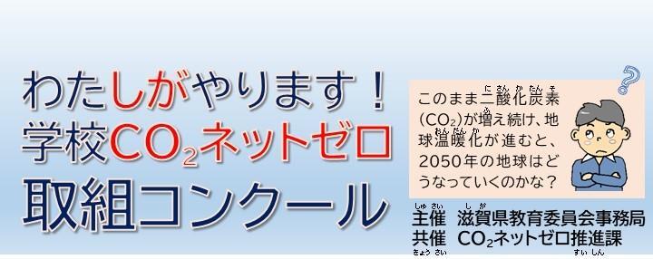 滋賀県教育委員会では、児童生徒の創意工夫を生かし、他者と協力しながら主体的にCO2ネットゼロに向けて取り組む態度の育成を目指すとともに、学校におけるCO2ネットゼロに向けた取組を普及・推進することを目的に、令和4年度より「わたしがやります!学校CO2ネットゼロ」取組コンクールを実施しています。